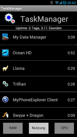With TaskManager you can view and stop running applications. You can choose between user applications oder all applications of the system include .